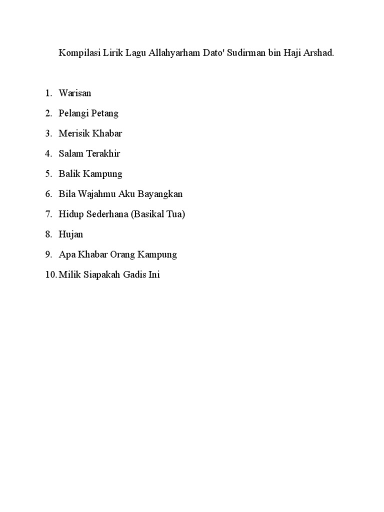 Menurut kakak beliau datin rudiah haji arshad, mereka kadangkala sengaja menyanyi sumbang untuk mengusik sudirman. His singing career kicked off after winning the bintang rtm singing competition on 11 august 1976. Sudirman hj arshad • balik kampung • (mmcxxx® retro remix). Lagu raya balik kampung sudirman hj arshad. Sudirman 8 ke 4 punch card dan balik kdanung konsert sudi 1991 asia39s no 1 performer. Share lagu kenangan dari allahyarham sudirman. Datuk sudirman haji arshad 1 year. Download mp3 sudirman balik kampung dan video mp4 gratis. Lirik sudirman hj arshad • balik kampung • (mmcxxx® retro remix) tidak ada lirik. Datuk sudirman haji arshad 24 december 2017. Allahyarham sudirman bergandingan dengan jaafar onn berlakon dalam video klip 'balik kampung'. Includes transpose, capo hints, changing speed and much more. Lagu dari sebuah bilik released :